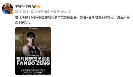 見面簽名收1500,曾凡博替籃網(wǎng)和主辦方背鍋?