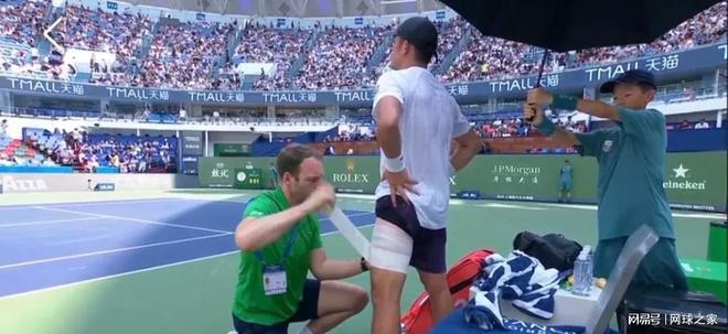 第十一局吳易昺在救一個小球時,可能是用力過猛拉傷了左大腿,進(jìn)入局休后中國一哥就叫了醫(yī)療暫停。